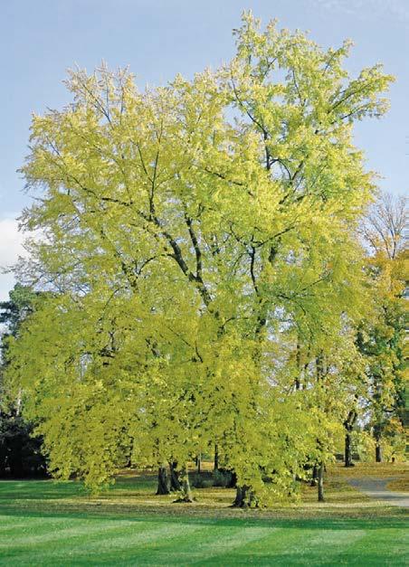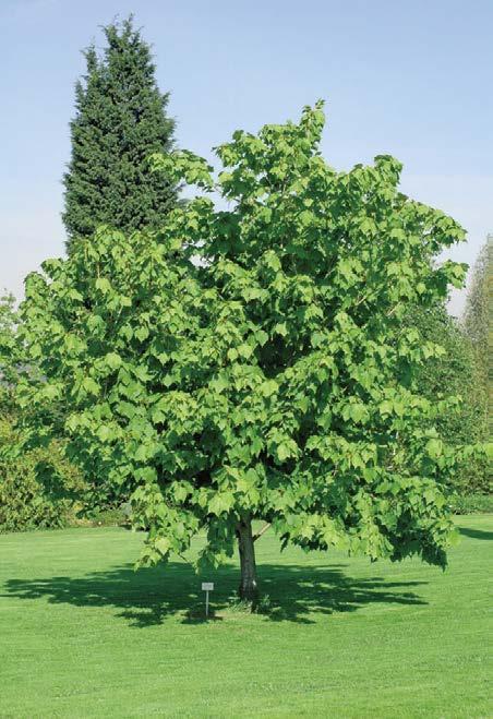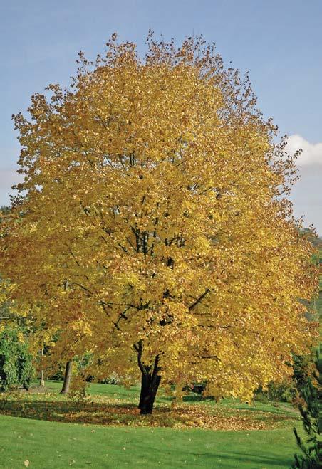 ‘Green Mountain’; široce pyramidální strom 10–12 m vysoký a 6–8m široký; listy tmavě zelené, kožovité, na podzim oranžové a šarlatové