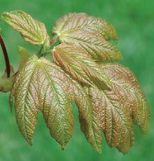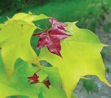 ‘Friderici’; listy při rašení bělavě žluté, později trvale zlatožluté, řapík a žilky červené