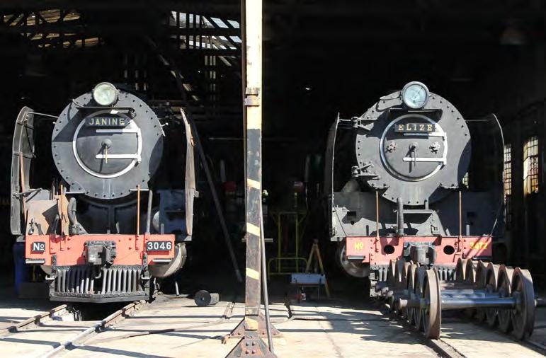 Pionýra JAWA 50… Z okolních lokalit vás (po dopravní stránce) zaujme Germiston, městský satelit, vzdálený asi 30 km od mezinárodního letiště JNB. Ještě nedávno tu bylo velké lokomotivní depo, železniční dílny a také šrotiště lokomotiv, patřící Jihoafrickým železnicím South African Railways (SAR), zastoupeným společností Transnet, což je státní železniční dopravce. V minulosti tu škodovky zbrojily při obratech do domovských dep, ležících v nedalekém Klerksdorpu, Capital Parku nebo Beaconsfieldu. Po místním ukončení parního provozu v roce 1994 si celý areál depa pronajala nezisková organizace Reefsteamers, která se starala o údržbu a obnovu lokomotiv, které tu byly deponovány. Organizace byla založena už v roce 1991 a za 24 let činnosti její členové odvedli obrovský kus práce pro železniční historii. Kromě oprav vypravovali také víkendové turistické vlaky z Johannesburgu do Irene nebo nostalgické luxusní vlaky po celé Jihoafrické republice. Právě tyto vlaky byly zdrojem jejich pravidelných příjmů. Bohužel nevýhodně uzavřené smlouvy, rostoucí dluhy a neschopnost komunikovat s Transnetem způsobily, že se „piloti“ Transnetu dostavovali k odjezdům privátních vlaků s několikahodinovým zpožděním nebo se nedostavili vůbec. To mělo za následek, že vlaky byly zpožděné, či dokonce zůstaly nevypravené. Tento stav dostával postupně zahraniční turisty do varu a společnost Reefsteamers do kolen. V prosinci roku 2019, k lítosti nás všech, společnost Reefsteamers zbankrotovala.