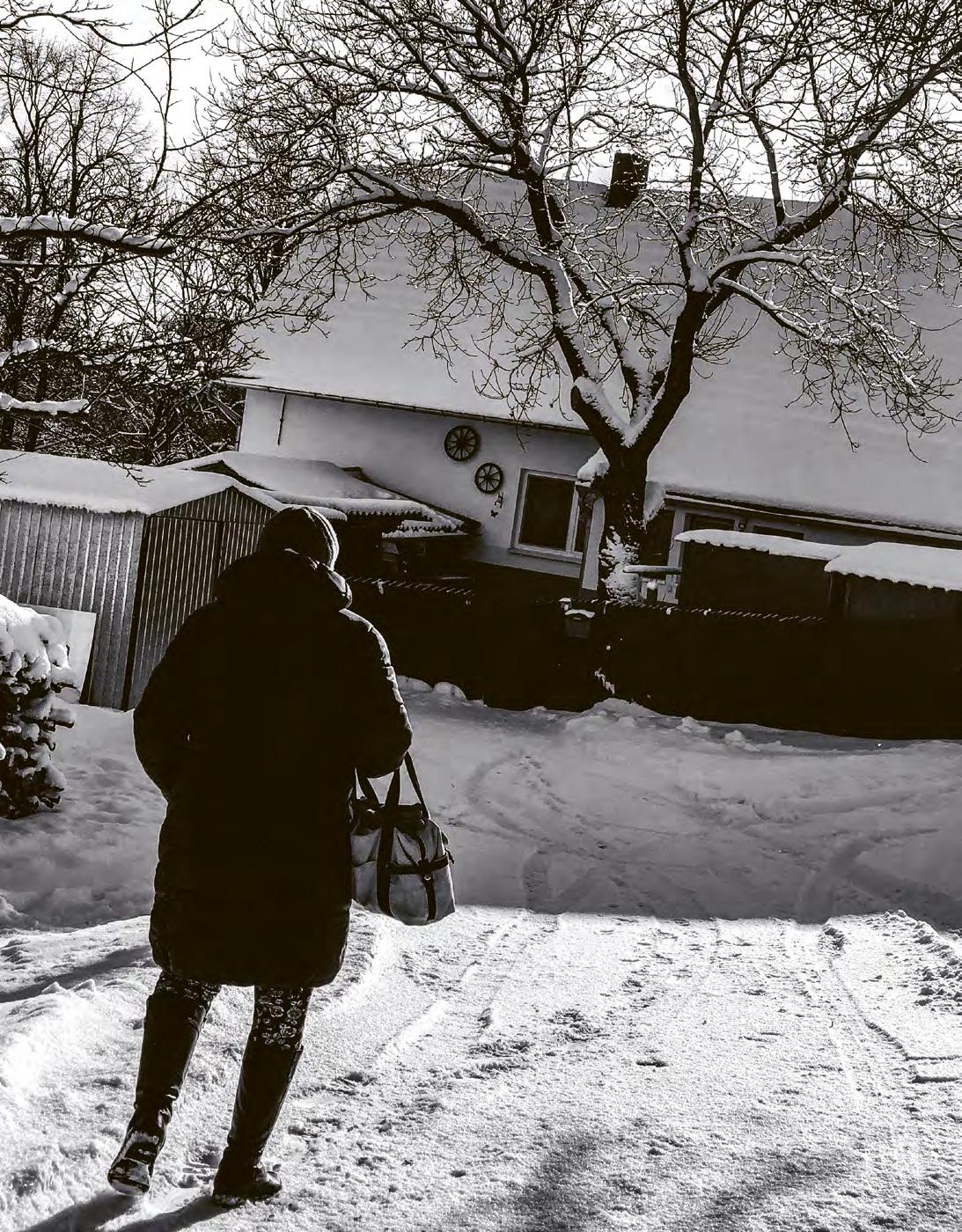 Venku byla zima a nasněžilo. Stromy byly pokryté sněhem a námrazou, cesty klouzaly, my jsme byli oblečení jako matrjošky a sotva jsme se hýbali. Máma mě posadila na saně a někam se šlo. Nedaleko od našeho domu jsme se zastavili a bylo slyšet, že na záchodě zůstal puštěný ventilá