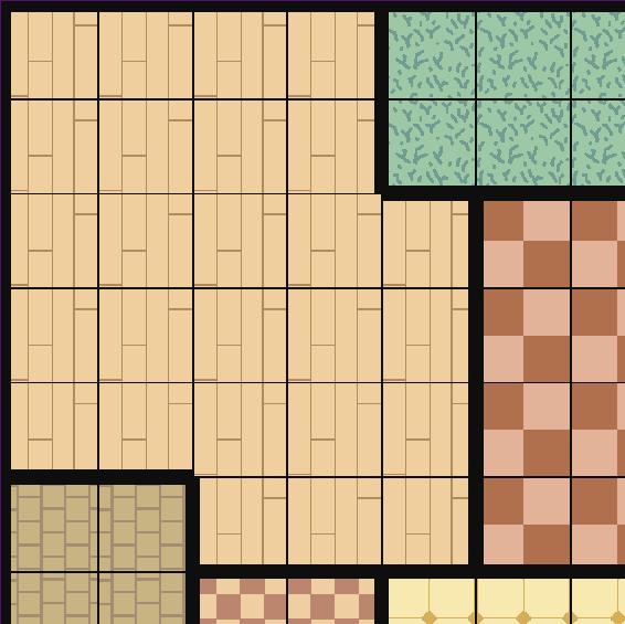 Předvedeme si to na příkladu. Tento případ má tři podezřelé a jednu oběť. Všechny účastníky je třeba umístit na místo činu o rozměrech 4 x 4 čtverce, které je rozdělené na dvě místnosti.