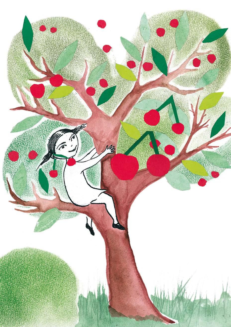 malý žebřík a košík a natrhala mamince spoustu velikých červených třešní na bublaninu, což je koláč s třešněmi nahoře. Terka se dívala do trouby, aby si nenechala ujít, jak bublanina bublá a nadskakuje a nádherně voní, a už se těšila, jak ho bude ukusovat a zároveň plivat pecky ven. Jenže v tu chvíli se rozštěkal na dvorku Kolumbus, ozval se rachot motoru a pak bouchnutí vrat od stodoly. Maminka s Terkou vyběhly před dům, ale to, co viděly, byl jen tatínek, který stál opřený o stodolu a tajuplně se usmíval.
