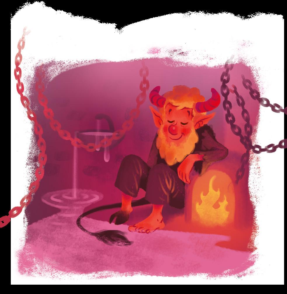 Dnes měl službu Koniáš. S odporem si vzal koště a zametal pekelný prach, který se od včerejška usadil na podlaze. Přikládal polínka do krbu a radoval se z toho, že nemusí dřevo řezat nebo štípat sekerou. Lucifer to zařídil tak, aby z hromady neubývalo. Když se polínko odebralo, okamžitě se objevilo další.