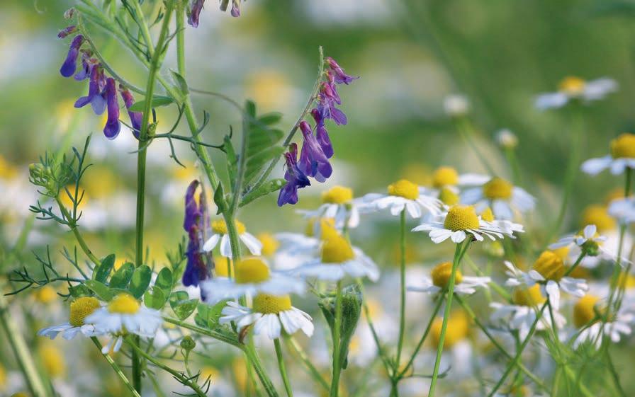 Tak krásná může být divoká flóra: vikev ptačí rostoucí společně s heřmánkem.