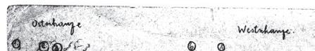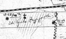 Plánek frontové situace u železničního mostu přes Stochod poblíž Kovelu na rusko-rakouské frontě v létě 1916 (na polním korespondenčním lístku)