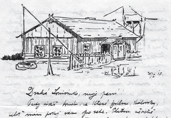 Počátek Hejdova dopisu Louise s ilustrací z polského Chelmu (20. 1. 1918)