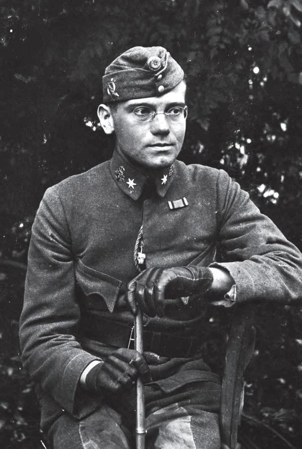Fronta je klidná, ale hned druhý den, po tom, co jsme sem přišli, jsem dostal „křest ohněm“, když z ničeho nic na nás začalo střílet ruské dělostřelectvo. Napřed to vypadalo docela nevinně. Na východním obzoru se jako veliká tlačenka objevil upoutaný balon. Senzace! Všichni jsme se vyhrnuli podívat se na ten zázrak. To byla chyba. Najednou slyšíme nad hlavou rostoucí hukot, který se změnil v pronikavý jek, a vzápětí asi padesát metrů za námi vyletěla do povětří fontána černé země a ozvala se detonace. Ruské osmnáctky! Hned nato se vše opakovalo a druhá detonace vyrovnala půdu asi padesát kroků před námi. Problesklo mi hlavou, co jsem se učil v důstojnické škole: zastřelují se, třetí rána půjde doprostředka – na nás. Vyletěl jsem ze svého místa a utíkal kupředu. Ale už se blížil hukot granátu, proto jsem se rozplácl na zem a zaryl tvář do trávy. Třetí detonace mě ohlušila, cítil jsem, že na mě padá hlína, ale jinak se nic nestalo. Hned jsem vyskočil a běžel ještě víc kupředu, ale Rusové už nevystřelili. Přesto se mi strachem zapotila střeva a dostal jsem průjem. Když jsem pátral po okolí, čím bych se utřel, uviděl jsem na dosah ruky nějaký ohořelý kus papíru. Sáhl jsem po něm, ale zarazil jsem se. Byl to vytržený list popsaný hebrejským písmem. Pravděpodobně z modlitební knihy. Vytřel jsem se travou a hebrejský text jsem složil do náprsní kapsy.