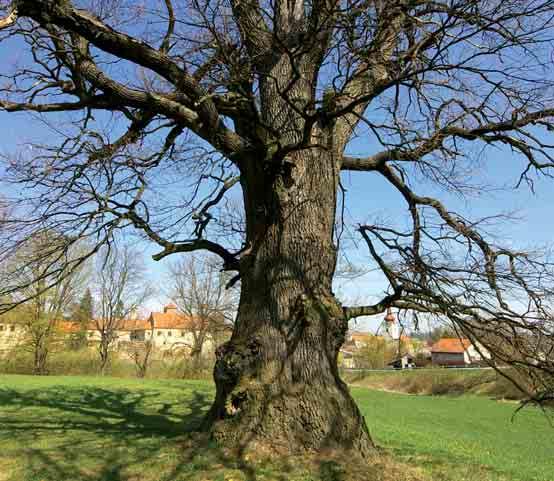 Před komplexem budov bývalé biskupské rezidence v Červené Řečici, kde údajně sídlili templáři, nás vítá mohutný památný staletý dub.
