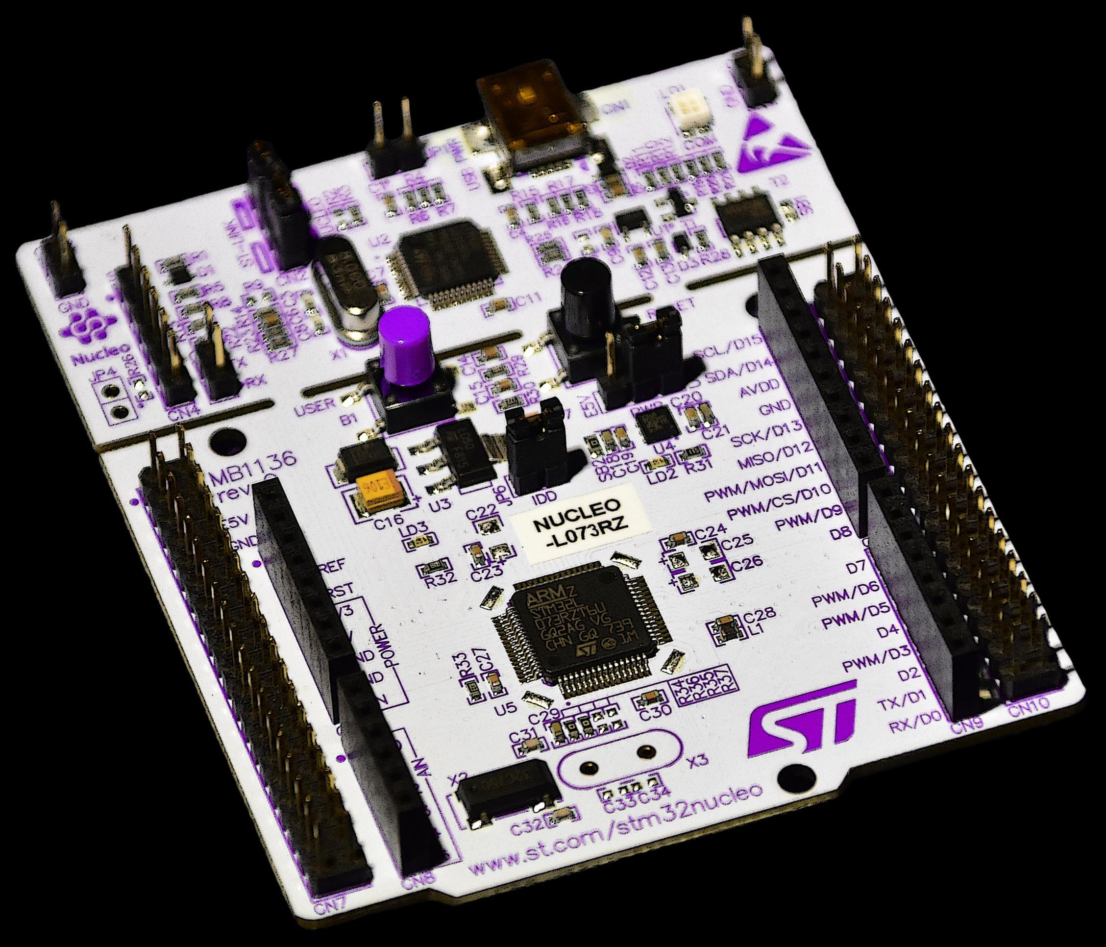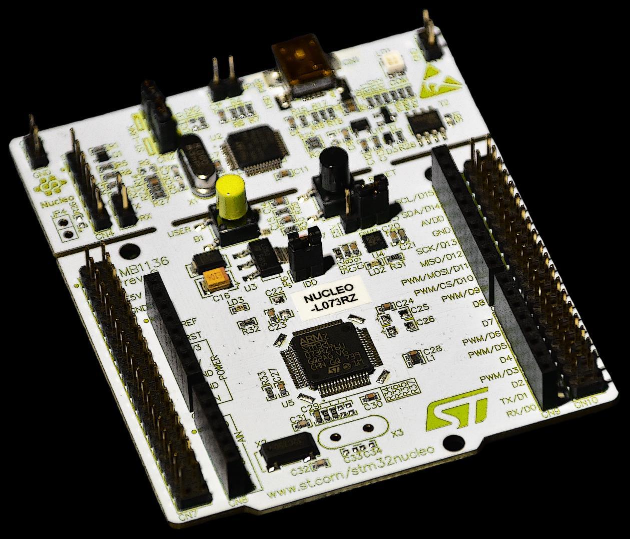 Prvnímznichjesamozřejměsamotnýmikrokontroler.Nejsnazšímzpůsobem,jakmítkdispozicifunkční mikrokontrolerpřipravenýkprogramováníapoužíváníjehoperiferií,jeopatřitsivývojovoudesku.Firma STMicroelectronicsnabízíširokouškálucenověpříznivýchvývojovýchdesek.Mezinejznámějšípatřířadydesek Nucleo a Discovery.Tyseodsebelišítím,žezatímco Nucleo obsahujepřevážněpouzemikrokontrolera konektory, Discovery dostčastoskýtátakérozličnésenzory,tlačítka,LED,displejeajinéprvky,připojené přímokekontroleruapřipravenékokamžitémupoužití.