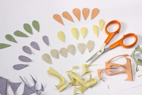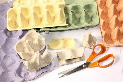 6. Nůžkami rozstříháme na menší kousky papírové obaly od vajíček