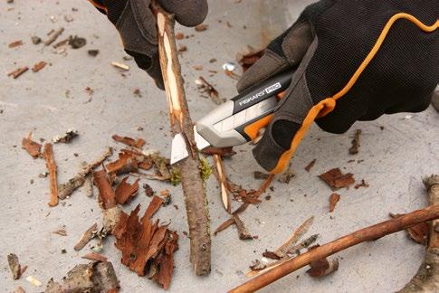 2. Kůru je možné z větví většinou odloupnout prsty, ale pokud na některých místech ještě drží, pomůžeme si ostrým nožem