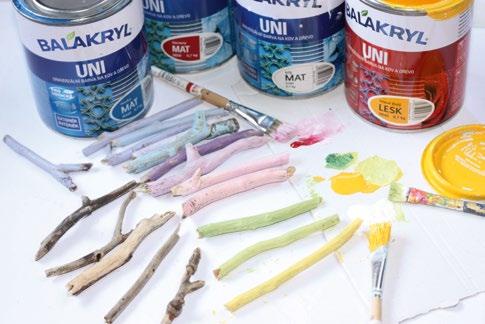 4. Potom větvičky natřeme různými odstíny akrylových barev a necháme zaschnout Podle potřeby postup opakujeme