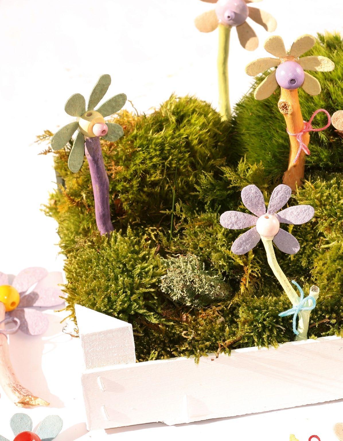 Co budeme potřebovat: suché větvičky (průměr asi do 1 cm) • gumovou paličku • nůž (je-li potřeba) • barevné papírové obaly od vajíček • akrylové barvy • štětce • hadřík • větší dřevěné korálky • tavicí pistoli • nůžky • obyčejnou tužku • různé barevné bavlnky nebo provázky • malou dřevěnou bedničku od ovoce (popř jinou nízkou nádobu) • mech