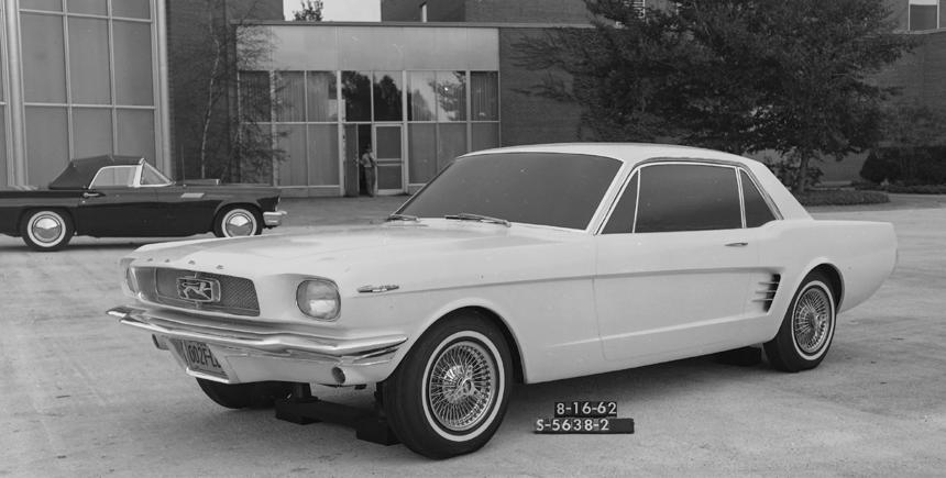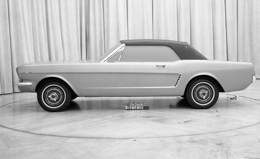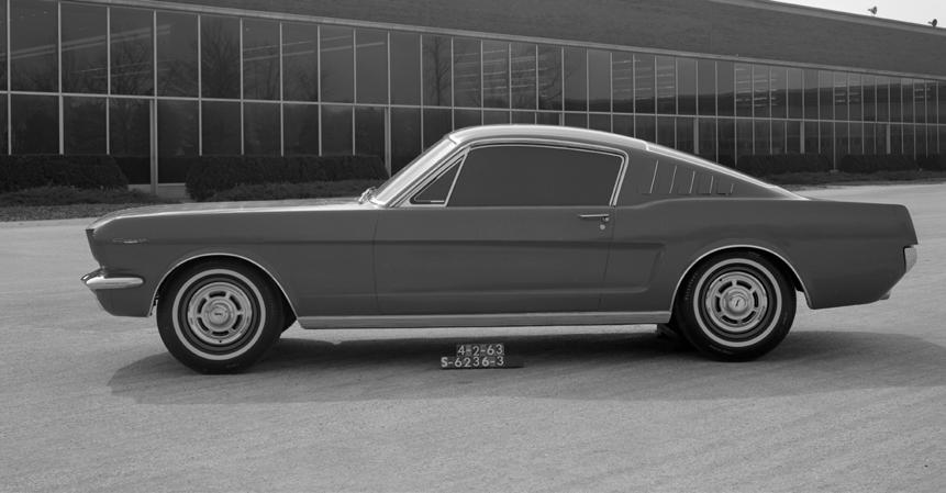 Na fotografii z poloviny října roku 1963 je fastback coupé už v podobě připravené pro sériovou výrobu včetně nápisu Mustang na předním blatníku