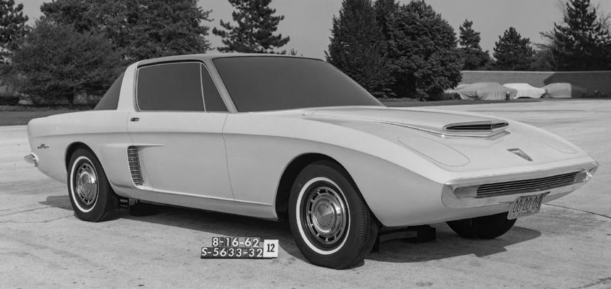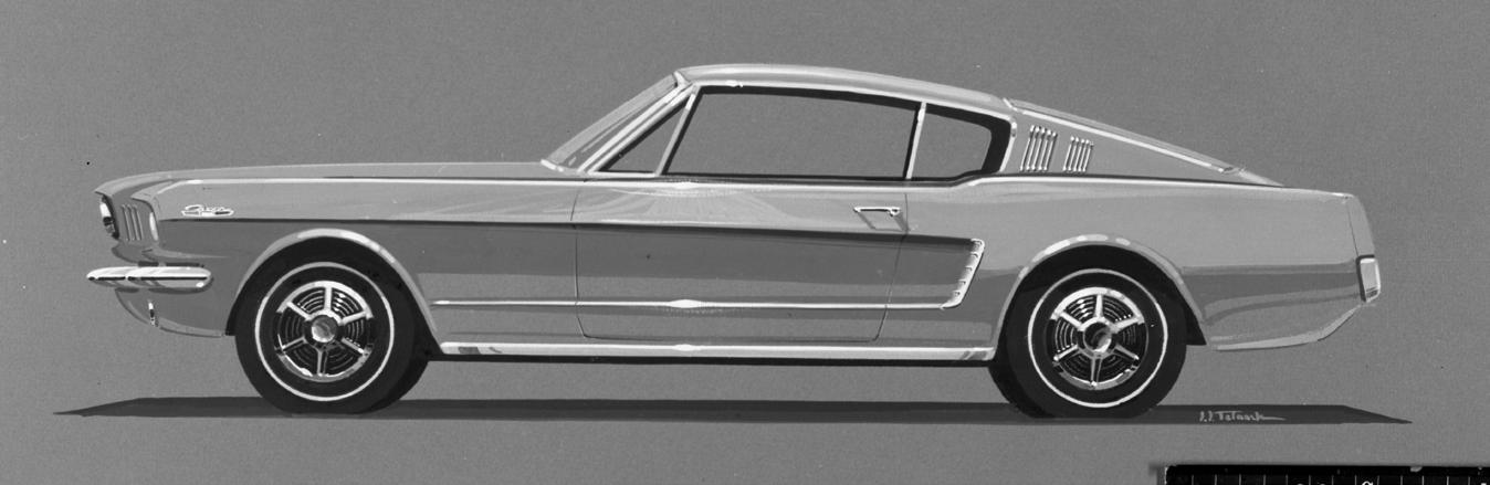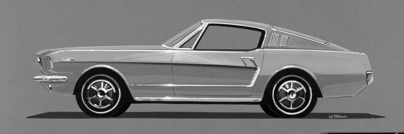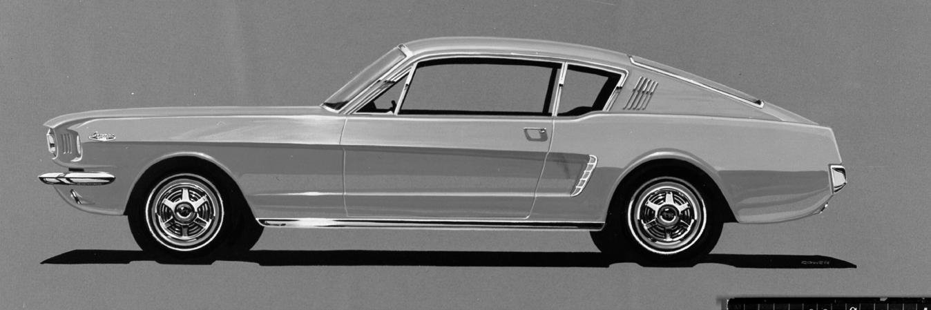 řada skic navzájem se lišících pouze tvarovým řešením střechy. Gale Halderman později vzpomínal, že na fastbacku pracovali až do dokončení modelu karoserie z laminátu v podstatě tajně.