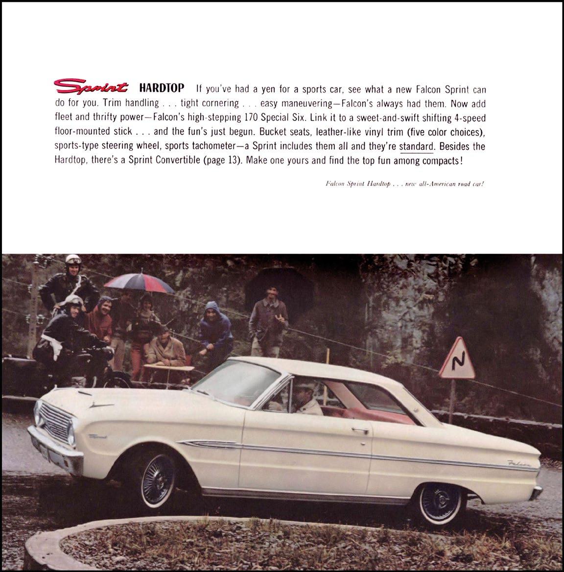 Stránka z reklamního prospektu Ford Falcon Sprint Hardtop z roku 1963 zdůrazňovala sportovní vlastnosti