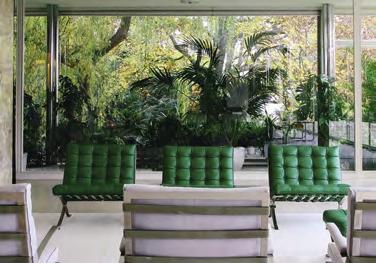fasádu a jednu boční stranu. Architekt tím dosáhl propojení vnitřního prostoru se zahradou.