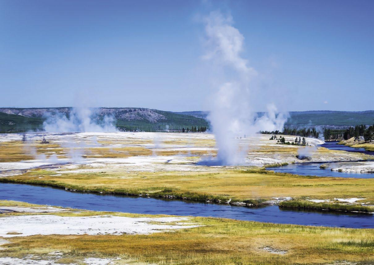 (neboli vulkánů), kde není nouze ohorké prameny, vystřikující gejzíry a vroucí jezírka. Ktakovým oblastem, tedy takzvaným hydrotermálním systémům, patří bezpochyby ty asi nejznámější, jež se nacházejí vYellowstonském národním parku vUSA, avšak podobná místa lze navštívit i na Islandu, ruské Kamčatce či jinde. Jak ale souvisí horké prameny se sopečnou aktivitou? Klíč spočívá vtom, že rozpálená voda, která se dere na povrch, nevznikla nikde hluboko vzemi: Dolů proniká zpovrchu, ajakmile se