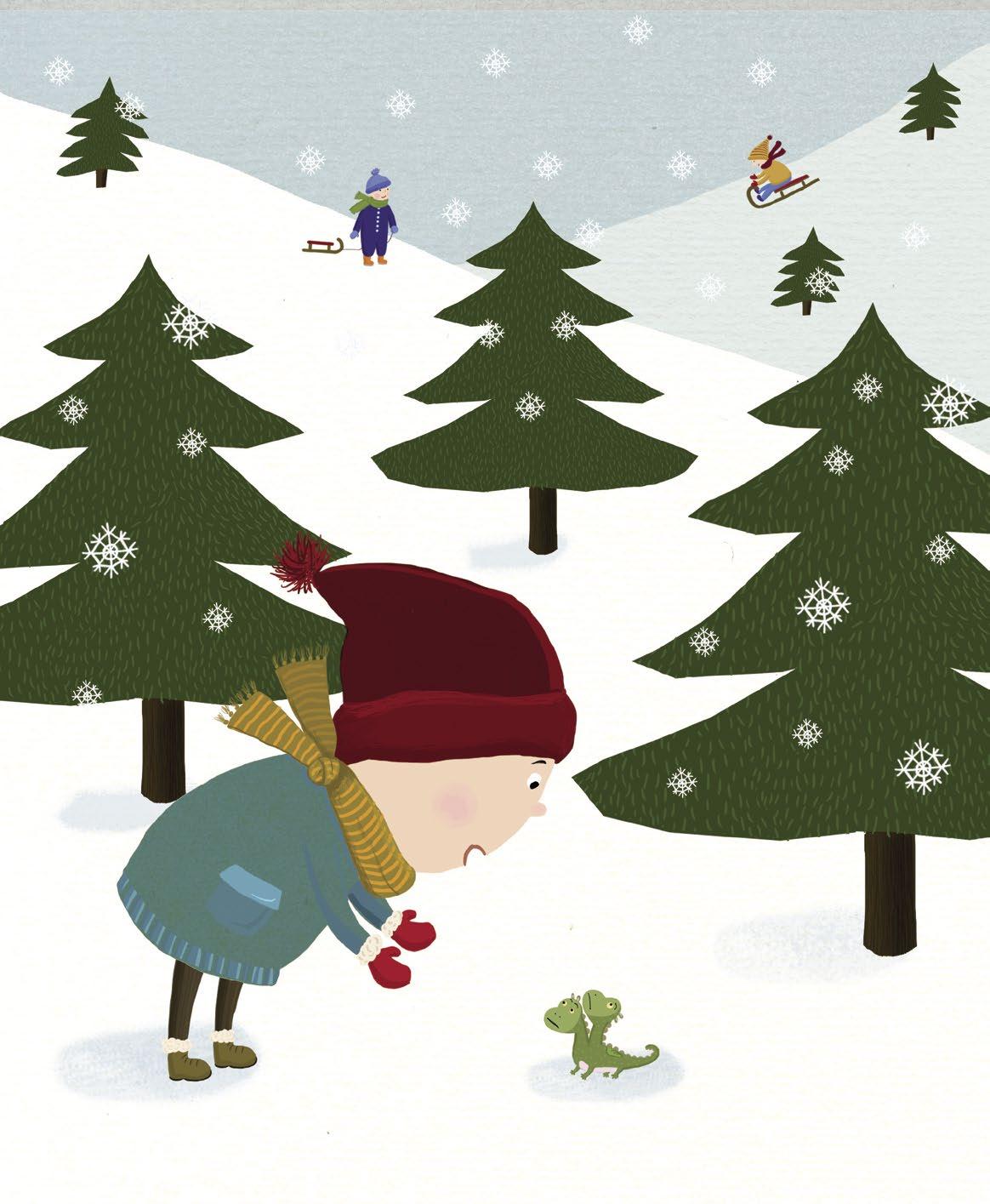Cestou domů zaslechl Míša tichoučké dvojhlasné hudrování: „Chrumpy, chrampy, škrty škrt!“ Něco takového předtím nikdy neslyšel. Kdo to vede tak divné řeči? Míša se sklonil a uviděl pod stromem na sněhu úplně maličkou ještěrku. To ho velice překvapilo. Ještěrky přece v zimě spí! Když se podíval ještě lépe, uviděl, že ještěrka má maličká křidélka a dvě hlavy! Dvě hlavy? Kdo to kdy viděl? A když se Míša podíval nejlépe, uviděl, že se na něj obě hlavy hrozitánsky mračí.