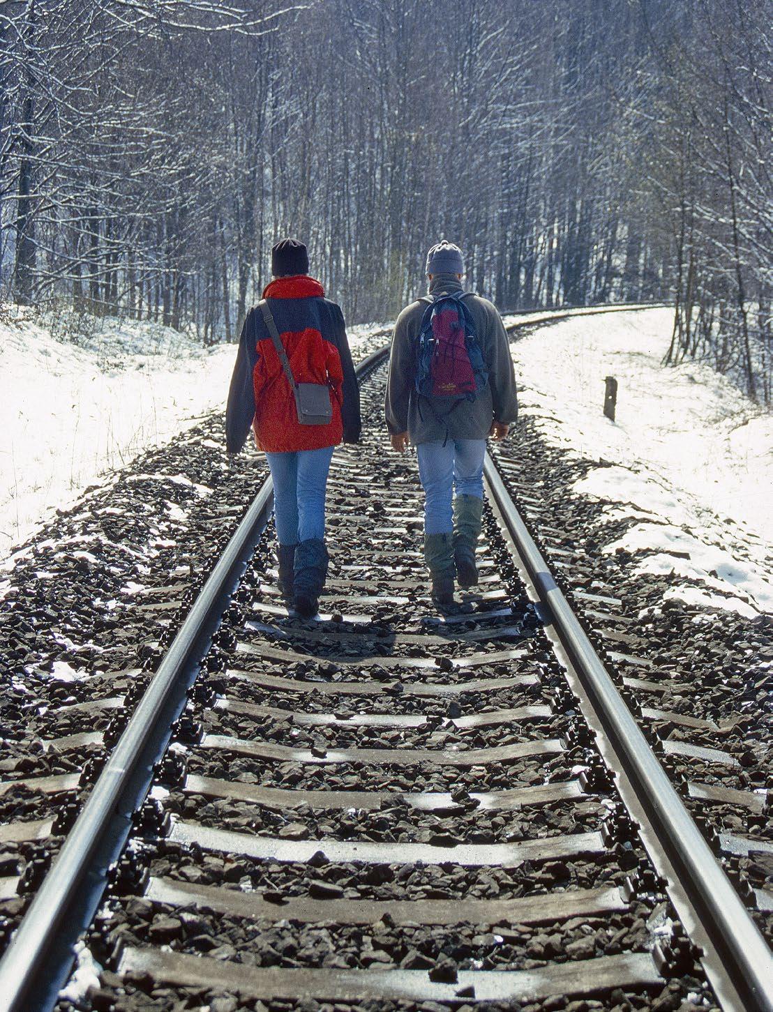 je asi na světě lidí, kteří propadli oné zvláštní vášni – chůzi po trati? Klopýtání mezi pražci a štěrkem, které nutně člověku zkrátí krok na polovinu, ale zase jej zrychlí. Na trati je totiž putování značně odlišné od jiných tras: vcelku pohodlně se vine vrstevnicemi na úbočí svahů, údolí překonává mosty a kopce tunely. Namísto turistických značek tu směr neustále udává pár lesklých pruhů kolejnic… Svět viděný z trati vypadá úplně jinak. Jako kdyby člověk přišel po zadním schodišti do neznámého, ale skvostného chrámu, na který shlíží pak zezadu, ze strany, která nebyla stvořena pro diváka. Pohledy do lesů i na lidské konání tak mívají zcela jiný rozměr. Od kolejí často vidíme neskutečný habrajz narovnaný či nasypaný za jinak úhlednými domky a zahradami; staré průmyslové areály jsou plné šrotu a tajemství, které nemělo býti vidět. Z trati se lze kochat i divokými sceneriemi horských potoků i hustotou hvozdů, do nichž jiné cesty nevedou. Ale člověk přitom má zároveň pocit, že je to vlastně podivné, koukat se na krajinu z vlaku. Že by bylo mnohem přínosnější, kdyby pozoroval ten z nejhezčích motivů v krajině – a tím je přeci vlak projíždějící malebnými místy. Třeba po mostě přes řeku či ve velké zákrutě kolejí kdesi pod zříceninou hradu či u rybníka. Protože bez pohledu na hýbající se vlaky by byla krajina o moc smutnější.
