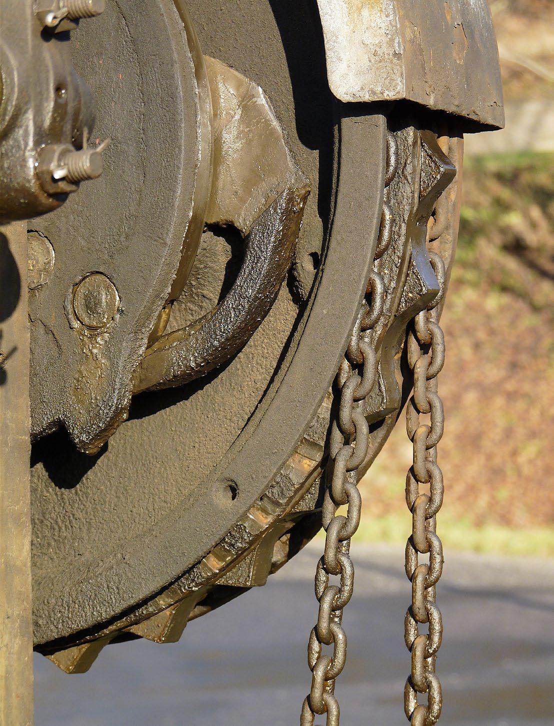 Ozubená kola, řetězy, ocelová táhla; vše namazáno mnoha vrstvami, které se s železem vlastně v jedno spojily. Pohled na staré železniční zařízení nás, tuláky, vrací kamsi do dětských let. Snad do časů pohádek o mašinkách či fascinace technikou z verneovek? Křižany, 23. prosince 2015.