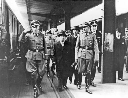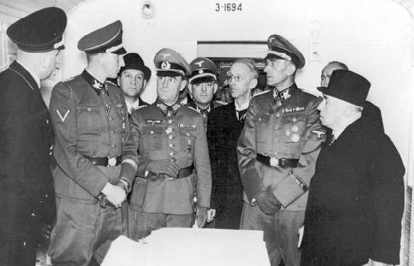 Předání sanitního vlaku Lazarettzug Nr. 751 na pražském hlavním nádraží, v popředí R. Heydrich, JUDr. E. Hácha, K. H. Frank – zdroj: http://www.reinhardheydrich.org