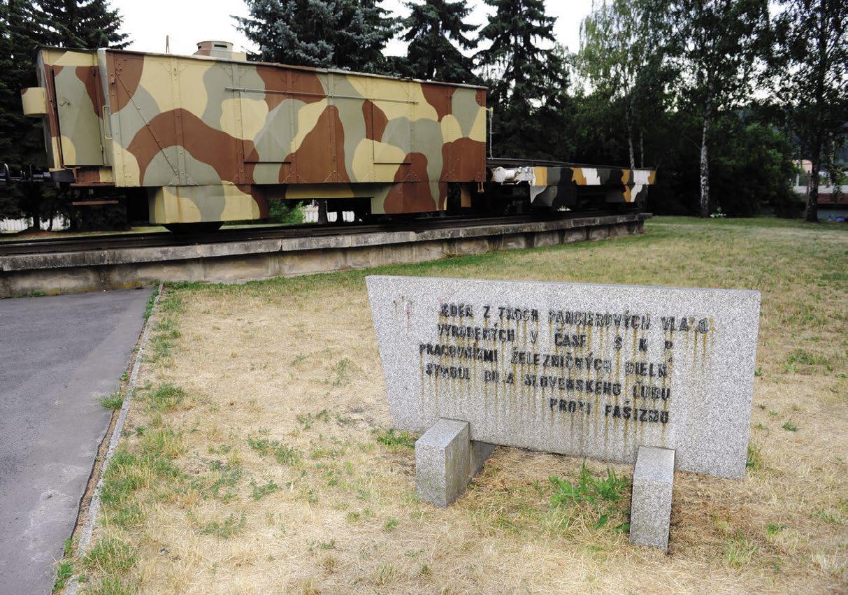 Předběhový a kulometný vůz improvizovaného obrněného vlaku Štefánik z dob SNP vystavený ve Zvolenu – foto: Vladimír Fišar