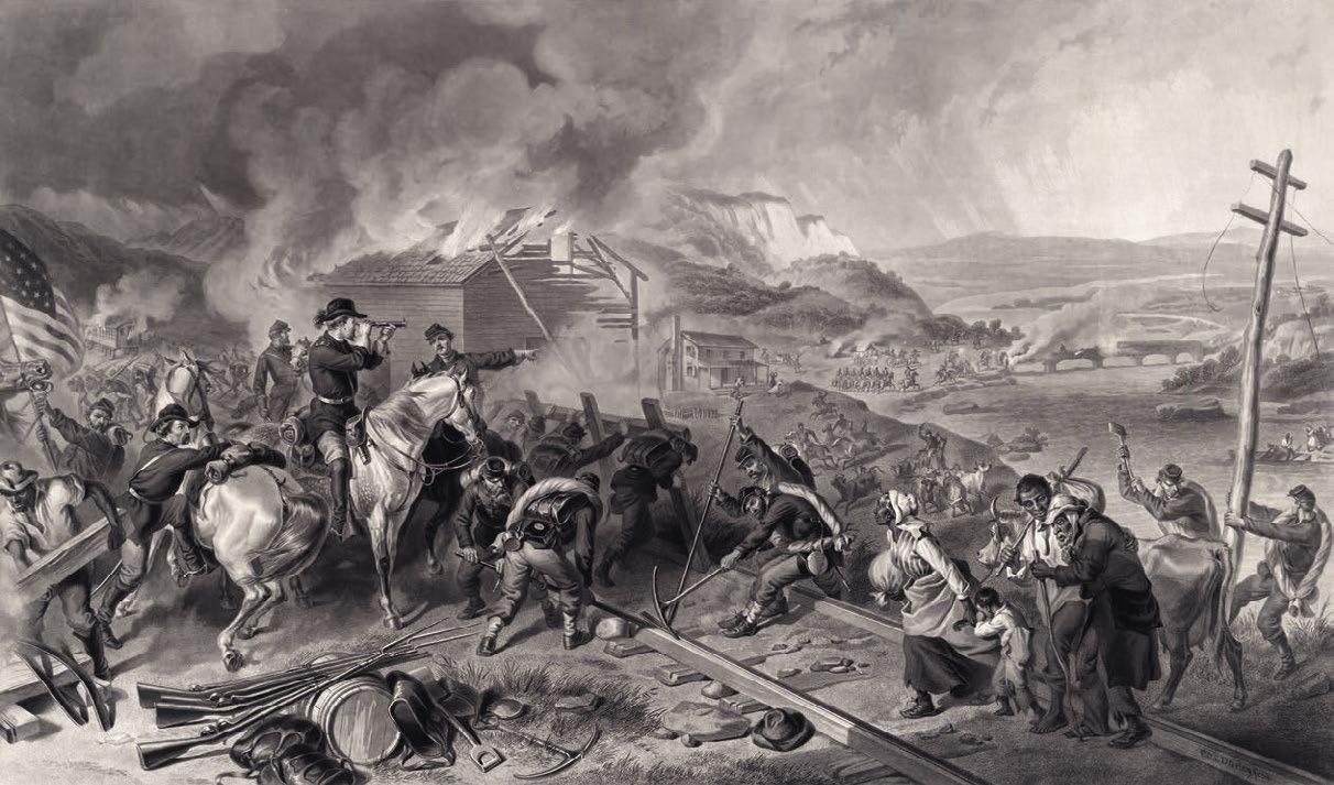 Americká občanská válka Severu proti Jihu, ničení železničních tratí vojsky Unie – zdroj: https://cs.wikipedia.org/