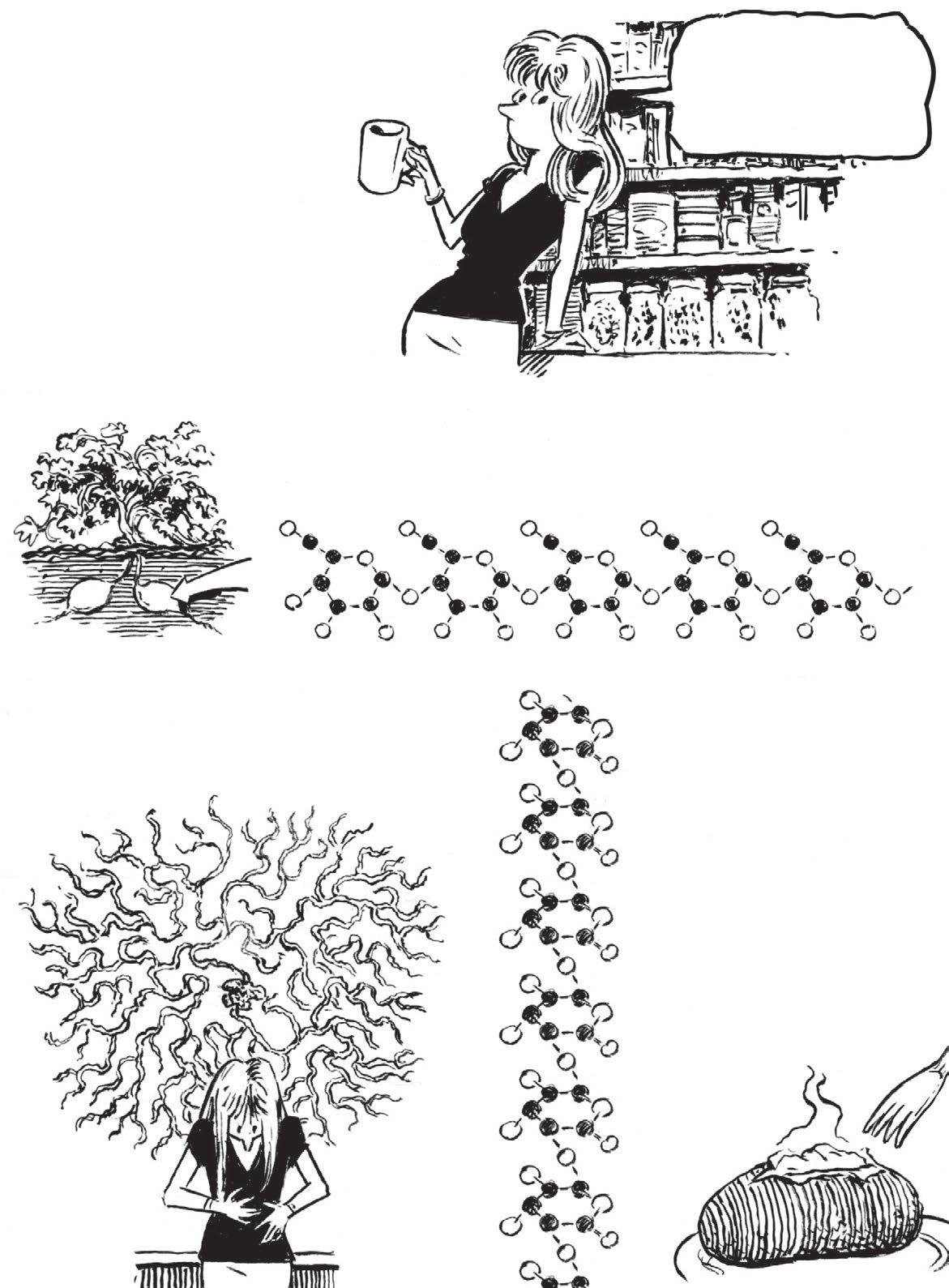 Rostliny tvoří polymer glukózy zvaný škrob, který si ukládají na později. Brambory, batáty ihlízy manioku jsou podzemní zásobárny škrobu.