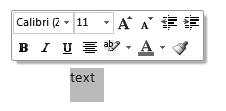 Panel nástrojů Rychlý přístup, Plovoucí minipanel nástrojů