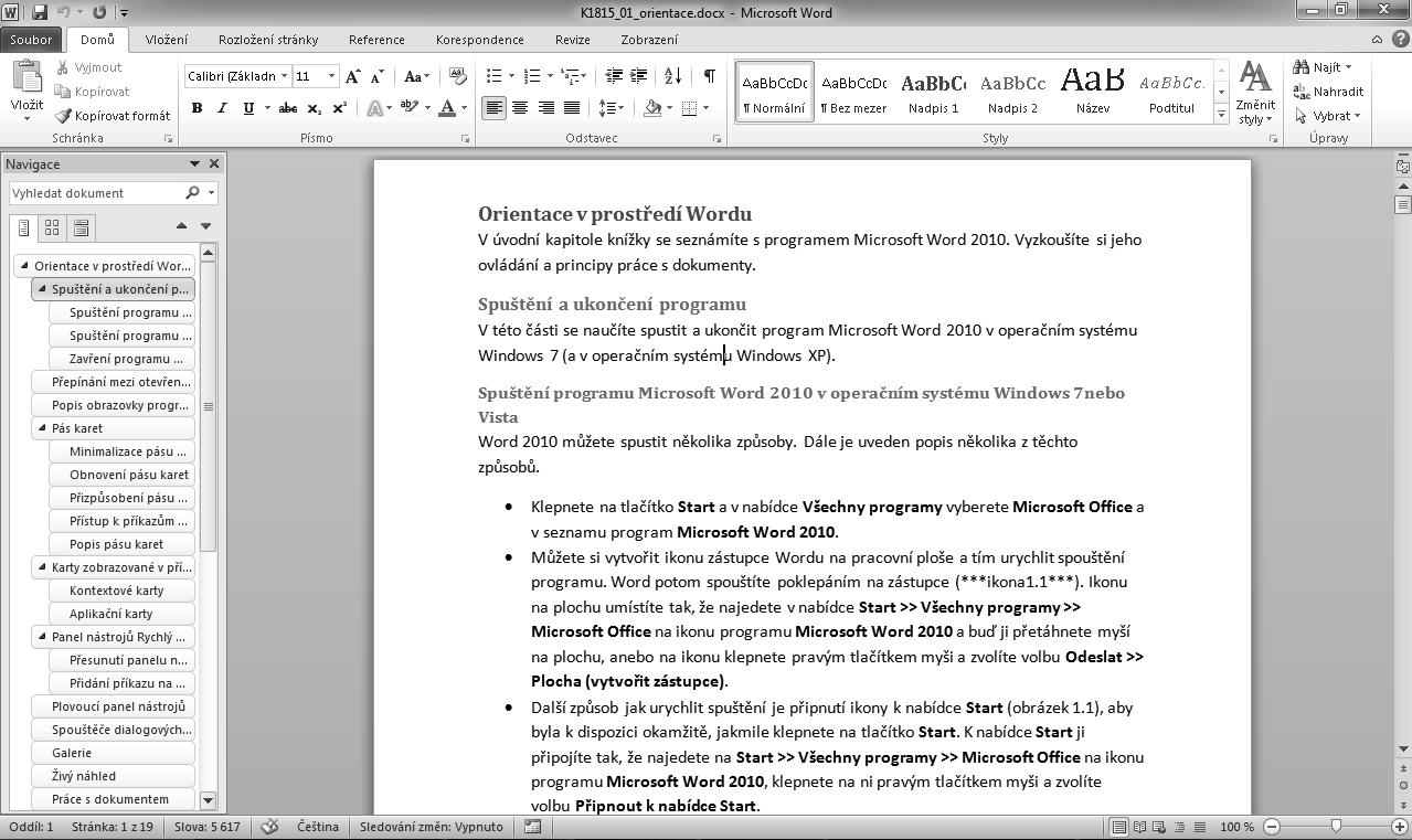 V úvodní kapitole knížky se seznámíte s programem Microsoft Word 2010. Vyzkoušíte si jeho ovládání a principy práce s dokumenty.