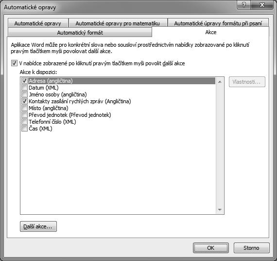2. Na kartě Akce nastavujete, jaké typy dat se rozpoznavaji (obrázek 1.26).