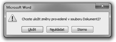 V případě, že se pokusíte zavřít dokument, který byl od posledního uložení změněn, zobrazí se při zavření souboru dotaz, zda chcete soubor uložit (obrázek 1.3). V tomto dialogovém okně máte následující možnosti volby: