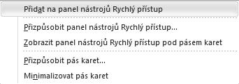 Panel nástrojů Rychlý přístup nabízí přístup k nejvíce používaným tlačítkům.