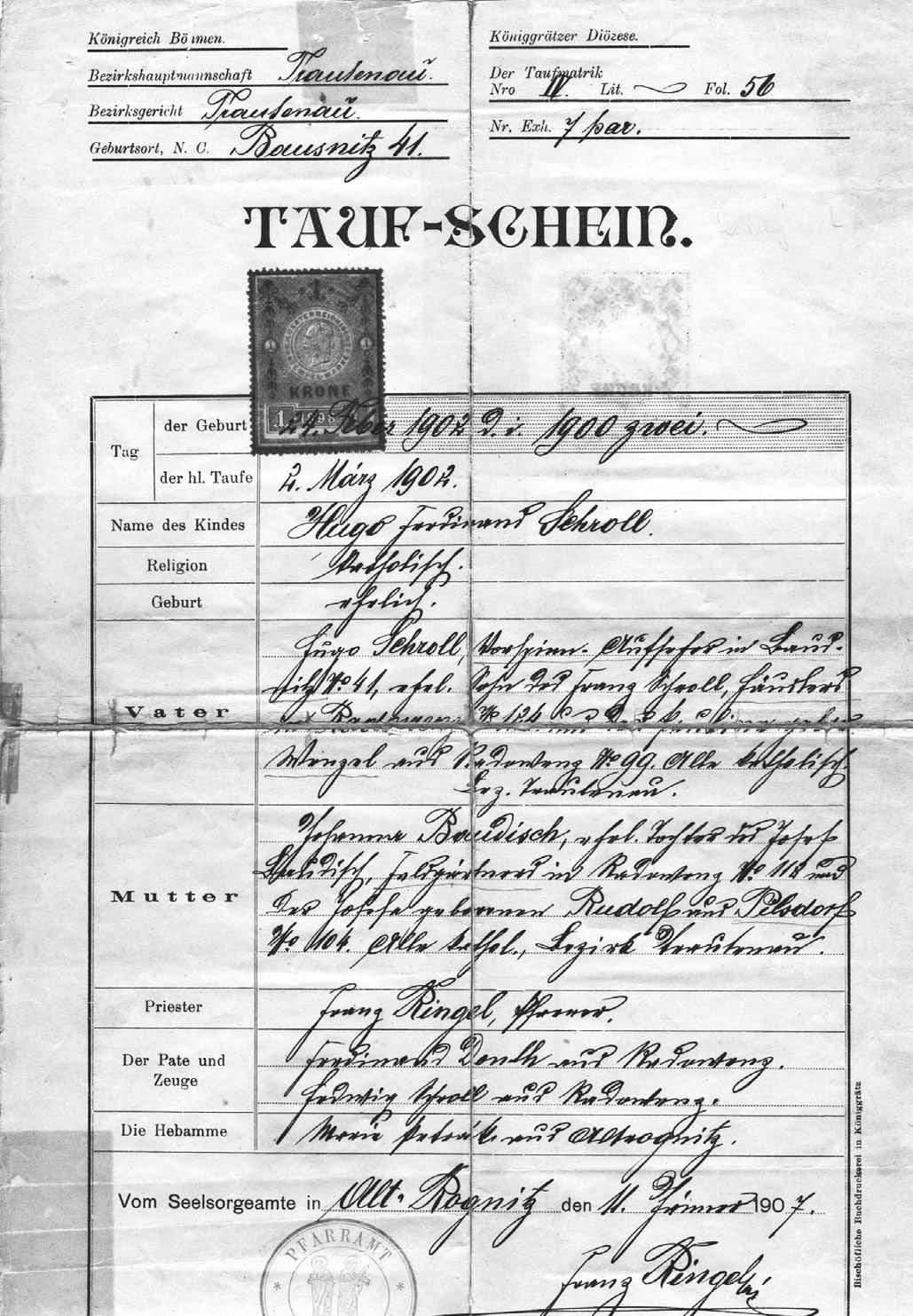 toho obsahoval i jména a místa původu jeho rodičů. Bohužel právě na údaji o rodné vsi Josefova stejnojmenného otce zahlo dal zub času a zápis se nepodařilo rozluštit. Při sledování otcovské linie tak před námi vyvstal první závažný zádrhel dříve, než jsme očekávali.