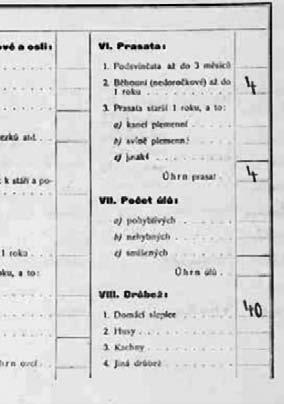 Pro genealogy, jejichž předci vlastnili hospodářskou usedlost, jsou sčítací operáty zajímavé i z hlediska zaznamenaného soupisu chovaných zvířat . Tyto údaje nám mohou posloužit nejen k utvoření představy o rozlehlosti gruntu, ale i o tom, jak se stavy dobytka, prasat, koní či slepic během dekád měnily.