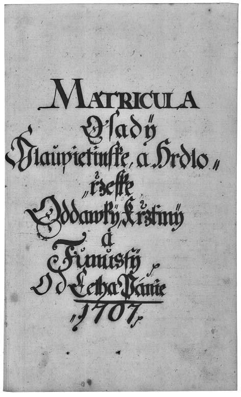 Titulní list matriční knihy: Matricula osady hlaupietinske a hrdlořzeske, oddawky, křztiny a funussy od Letha Panie 1707