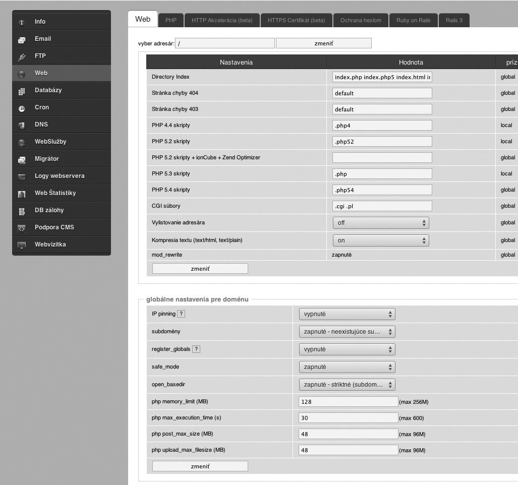 Tip: Změny webhostingových parametrů, jako například výše uvedená hodnota pro phpmemory_limit, změnu verze PHP nebo ostatní vámi požadované změny, vám provozovatel webhostingu ochotně změní na požádání za vás, pokud si na toto netroufáte sami.