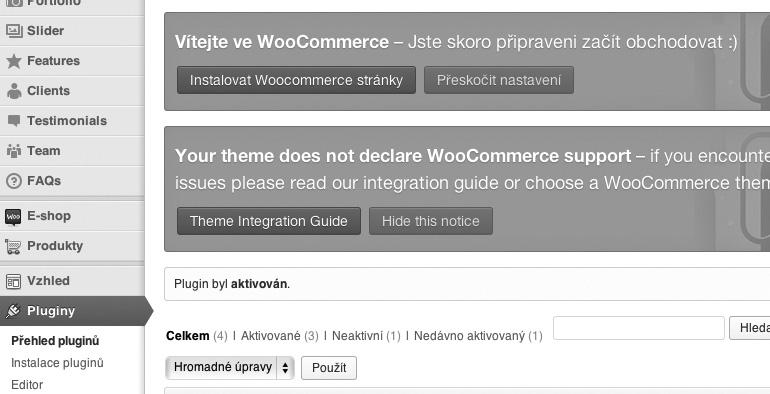 Plugin WooCommerce se aktivuje jako každý jiný plugin.