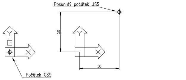 Posuňte počátek souřadného systému z výchozí (globální polohy) do bodu 50,50 (uživatelský souřadný systém).