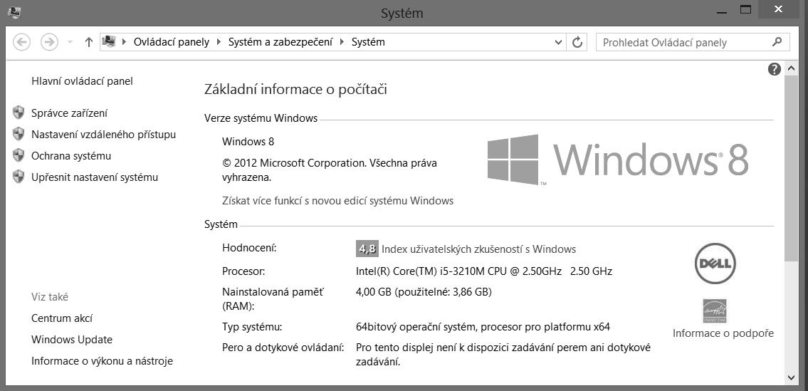 Poznámka: Pokud zvolíme notebook s více než 4 GB paměti, musí mít tzv. 64bitový systém Windows 8, protože tzv. 32bitový system umí využít maximálně pouze 232, tj. právě 4 GB paměti RAM. Výrobci notebooků to vědí a výkonné notebooky nabízí právě se zmíněným 64bitovým systémem Windows.