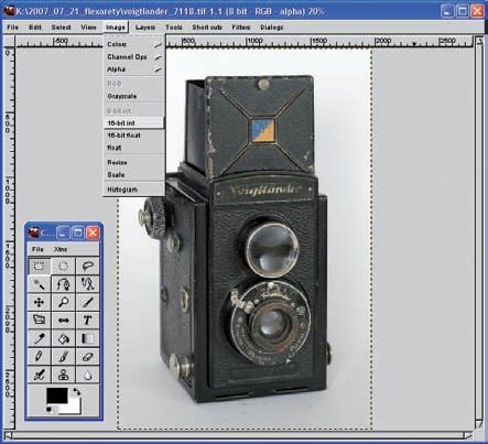 Poznámka: Problém omezené barevné hloubky je oblíbeným tématem příspěvků různých internetových diskuzí. Uvědomme si několik faktů. Jde o problém, který se může objevit až při opravdu značných úpravách tonality fotografie. Co se týče výstupů, naprostá většina výstupních zařízení dostupných amatérům si s více než osmi bity na kanál jednoduše neporadí. Osvitové jednotky minilabů pracují až na výjimky s osmi bity na kanál, a nosíte-li snímky do minilabu ve formátu JPG, vězte, že omezení na osm bitů na kanál je obsaženo přímo v definici tohoto formátu. Uvedený nedostatek GIMPu nejvíce zdůrazňují příznivci konkurenčních programů Corel Paint Shop Pro a Adobe Photoshop Elements. Jako zastánce GIMPu dodávám, že u obou jmenovaných není podpora šestnáctibitové barevné hloubky dostupná pro všechny důležité nástroje, což asi nejvíc mrzí u klonovacího razítka a práce s vrstvami.