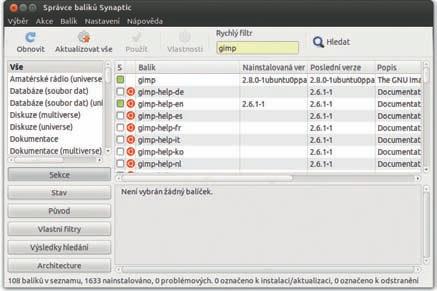 Samozřejmě, že použití příslušných grafických nástrojů pro správu balíčků je možné také. Ještě bych chtěl podotknout, že některé z desktopově orientovaných nebo univerzálních distribucí mají GIMP obsažen v základní instalaci a není nutné ho doinstalovávat.