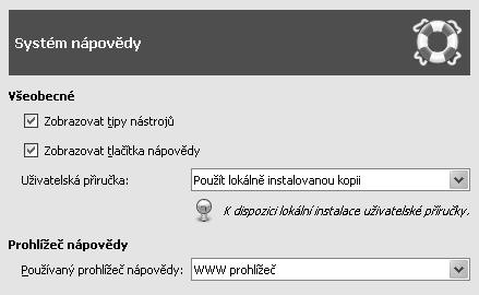 Poznámka: V předvolbách můžete změnit nastavení zobrazení nápovědy na systém nápovědy on-line (pouze angličtina).