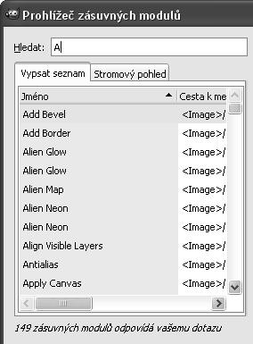 Obrázek 5: Hledaný zásuvný modul naleznete v seznamu všech nainstalovaných modulů v okně Prohlížeč zásuvných modulů