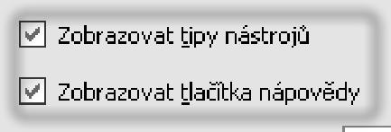 4. Ujistěte se, že jsou označeny volby Zobrazovat tipy nástrojů a Zobrazovat tlačítka nápovědy.