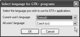 Obrázek 2: Změnu jazykové verze provedete v okně Select language for GTK+ programs, kde v rozevíracím seznamu vyberete požadovaný jazyk