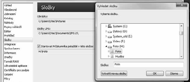 Poznámka: Ze stejného místa můžete rovněž určit výchozí složky pro obrázky a pro katalog.