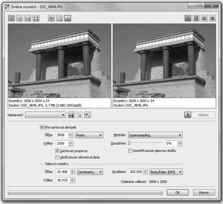 Zvětšit – několika stisky tlačítka lze obrázek zvětšit až k maximálnímu detailu; obrázkem lze potom v náhledu pohybovat tahem myši.