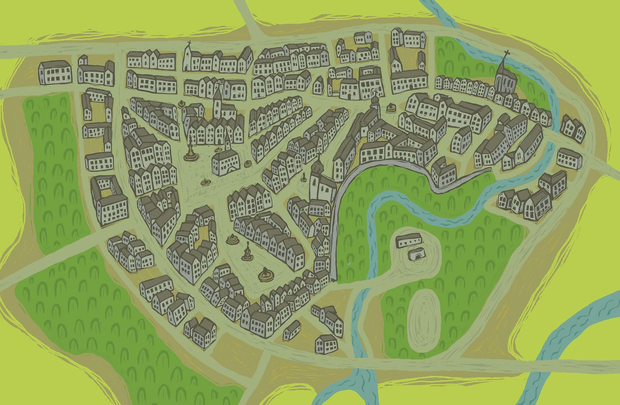 Za těžkou tvarůžkovou vůní, na řece, co se po žírné zemi jmenuje, obkrouženo choboty dálničních přivaděčů s nákupními centry a benzínovými pumpami, pod kopečkem tak svatým, až se mu Svatý říká, dýchá komíny farmak a fabrik, železáren i čokoládoven město rovinatých lidí, všedních dní i nevšedních bytostí. Sídlo okázalých staveb, přirozených i nadpřirozených úkazů, dobrého jídla i pití. Věcí neobyčejných, ale i zdánlivě banálních jako je dům starý tak, že nikdo nepamatuje jak, či orloj s lidmi z ulice a podivnými výročími v kalendáři. Měchatý fotoaparát, co už není, čím byl kdysi, z fotoateliéru, co kdysi byl a už není vůbec. Zoologická zahrada, odkud je vidět do široka daleka, či baletní piškoty z kůže těch nejlepších asijských hřebců, jejichž stáda se popásají na nekonečné mongolské stepi…